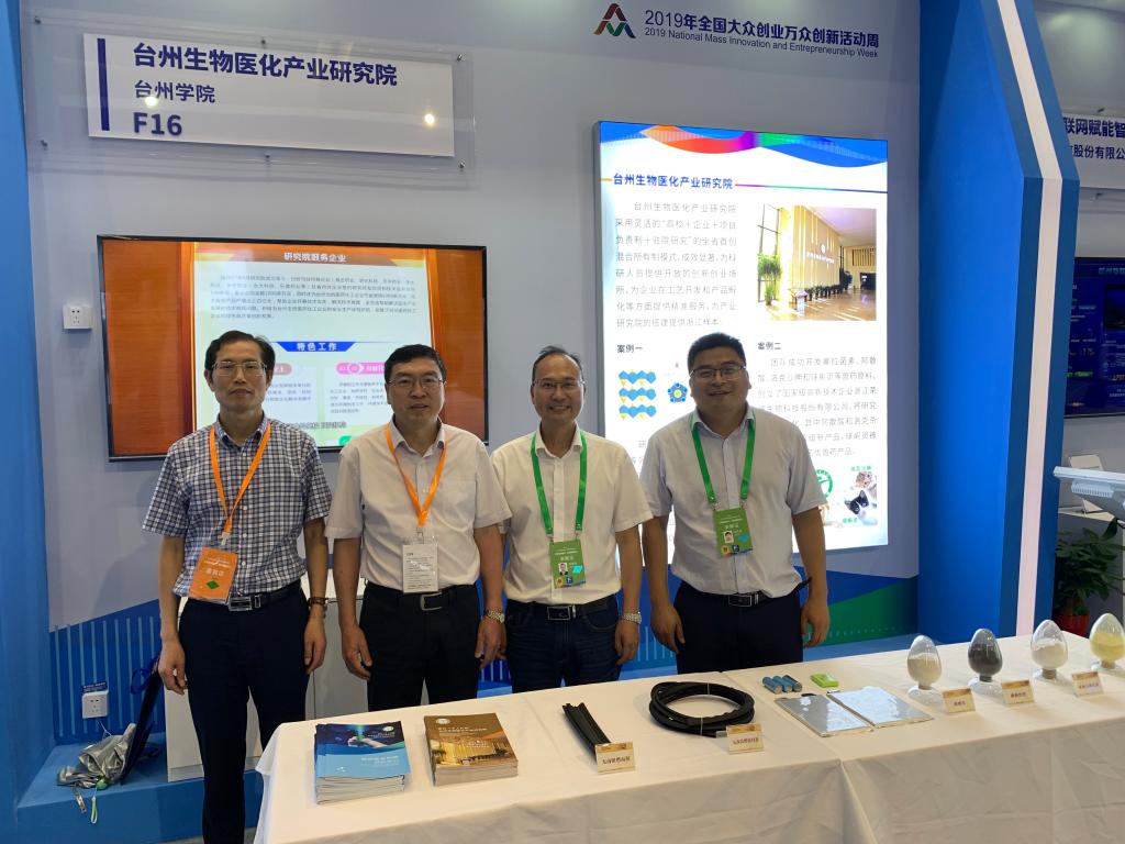 2019年6月13日,主题为“汇聚双创活力、澎湃发展动力”的2019年全国大众创业万众创新活动周主会场在杭州未来科技城盛大开幕,中共中央政治局常委、国务院总理李克强出席,并发表重要讲话。台州生物医化产业研究院从全国2000多个申报项目中经过层层筛选脱颖而出,代表学校参加展览。