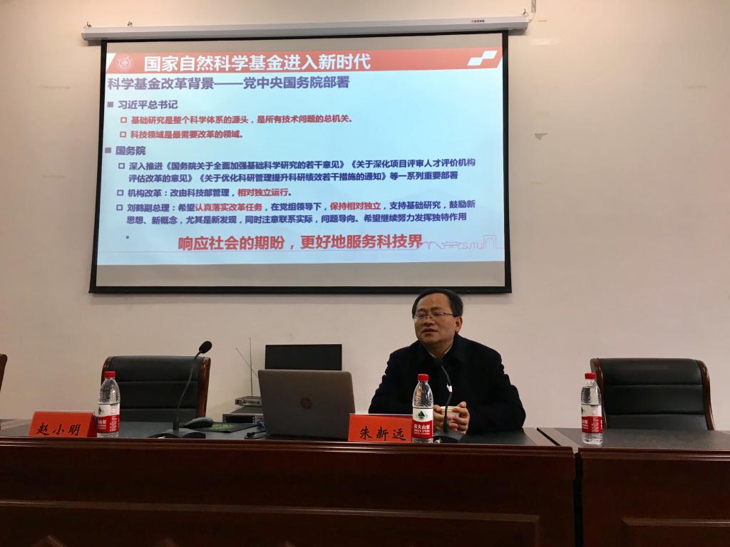 朱新远教授为师生作了《国家自然科学基金申请和评审经验交流》专题辅导讲座。他着重就国家自然科学基金委2020年申请政策变化、基金申报书如何撰写、未获批准申请书的共性问题、项目评审流程等方面作了辅导,并热心解答了教师基金申报过程中的各类疑惑和问题。会后,携同上海交通大学科学技术发展研究院管理人员与我校科研处相关人员进行交流指导,传授基金申报组织和管理等方面的先进经验,对提升我校该领域的管理水平具有很好借鉴意义。