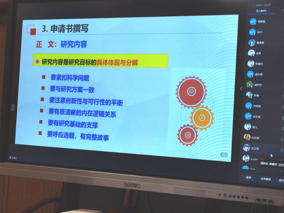 吴勇军教授结合自己多年来申请基金项目的体会,从基金申请立项情况、基金评审过程、撰写申请书总体思路、立项依据与研究内容、研究基础等各方面,详细讲述了撰写基金申请书时应该注意的事项,给与会教师提供了许多真知灼见。