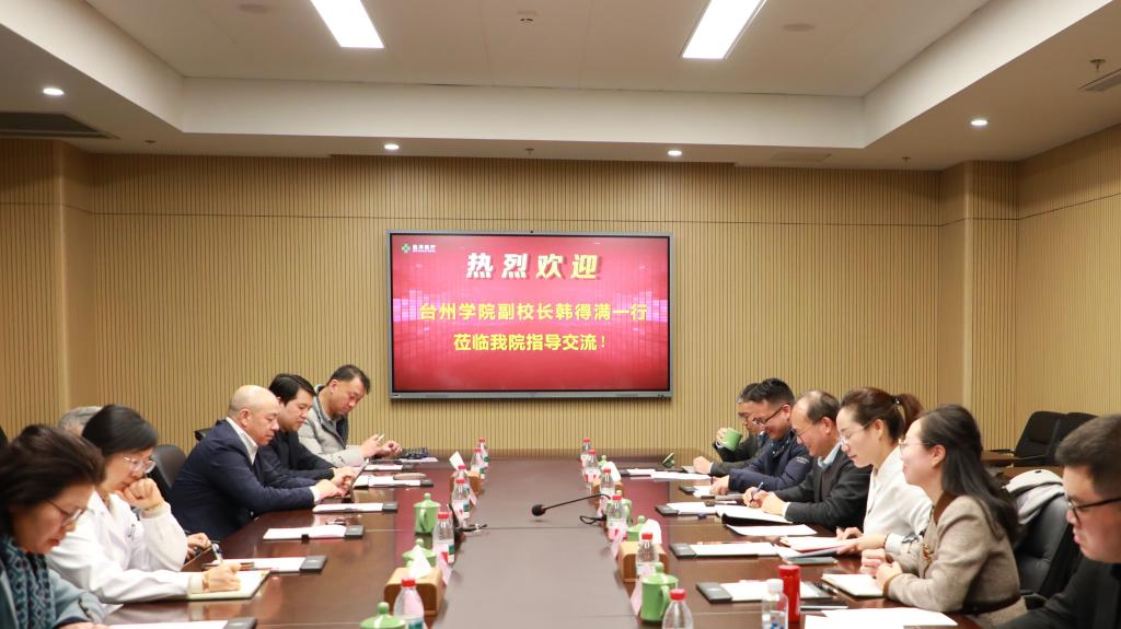 为深化我校与附属医院的融合发展,加强科研交流与合作,推动双方科研事业的共同进步和人才共享,3月20日,副校长韩得满率队前往台州恩泽医疗中心,开展对接交流。台州恩泽医疗中心党工委书记徐颖鹤、中心主任梁军波出席了对接会,学校科技处、医学院以及恩泽医疗中心相关业务部门共同参与了此次对接。