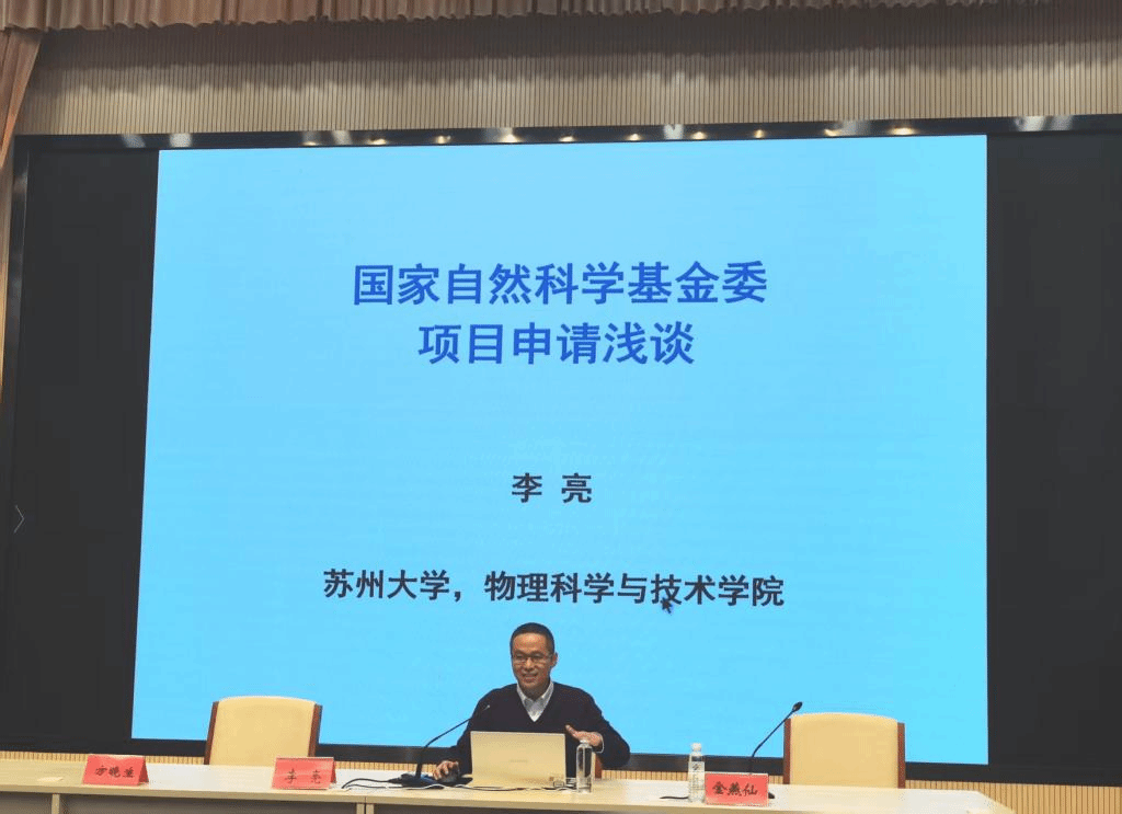 在专题报告环节,苏州大学物理科学与技术学院院长、国家杰出青年科学基金获得者李亮教授结合自身多年的科研积淀和丰富的基金申报、评审经验,作了题为《国家自然科学基金申请浅谈》的专题讲座。李亮教授从项目选题立意、科学问题属性的界定、立项依据的撰写,到研究方案的可行性分析、创新点的凝练、工作基础的呈现,直至申请书中常见错误与疏漏的解析,进行了系统而深入的讲解,为与会教师勾勒出一条清晰、高效的基金申请路径。
