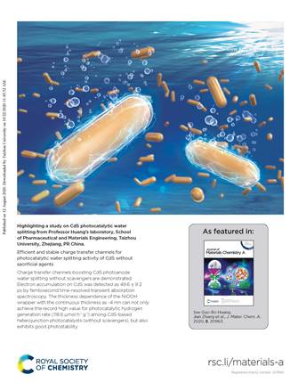近日,我校陈伟博士、黄国波教授与南京邮电大学张健副教授等人合作完成的研究成果“Efficient and stable charge transfer channels for photocatalytic water splitting activity of CdS without sacrificial agents”(https://doi.org/10.1039/D0TA06177H)在材料类知名期刊《Journal of Materials Chemistry A》发表,并被推荐为后封面论文。