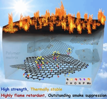 石墨烯作为一种新兴纳米阻燃剂,具有阻燃效率高、添加量低、综合性能优异等特点,是当前高分子材料阻燃改性研究领域的热点之一。然而聚合物/石墨烯纳米复合材料阻燃级别低下,难以满足实际工程应用的要求。针对上述难题,该研究论文以氧化石墨烯作为原料,通过氮掺杂反应、有机磷接枝修饰、钼酸根负载等制备新型功能化石墨烯(Mo5/PN-rGO),并作为阻燃剂应用于ABS树脂的改性。结果发现石墨烯化学修饰不仅改善了其在树脂基体的分散性,而且提高了ABS复合材料的阻燃、抑烟、耐热、力学等性能。该论文研究有助于建立阻燃剂高性能化的新方法,有助于开辟制备高性能阻燃高分子材料的新途径,并为该类阻燃剂的广泛应用提供理论依据。
