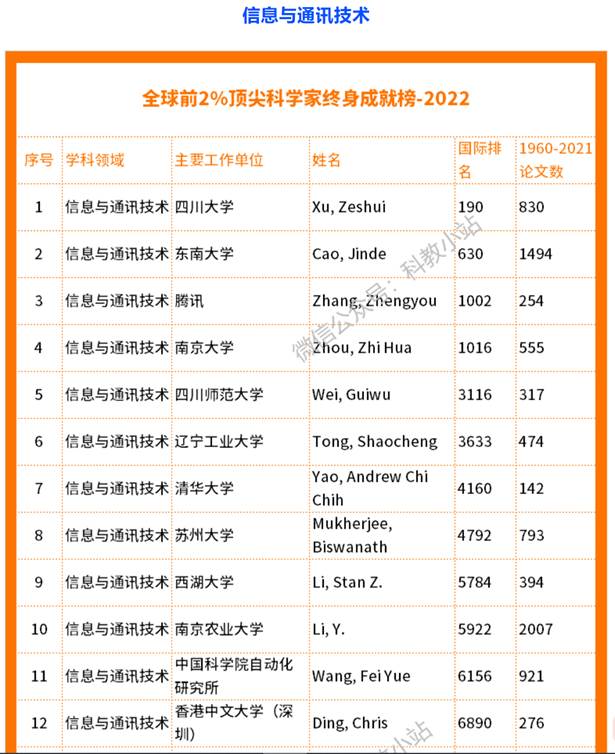 本次发布的2022年版本,统计数据时间节点为1960-2022年,涵盖全球200409位科学家。2022年版本中列出了多个学科涉及到的国内学者终身影响力排名情况,共有7795位国内学者入围全球前2%顶尖科学家终身榜https://mp.weixin.qq.com/s/-dNSzuAIFztA2pLGgjdTHg。