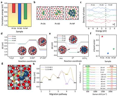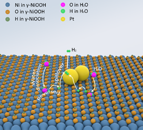 近日,钟文武教授团队发现了一种提高“金属颗粒-非金属衬底”复合材料中氢气析出反应活性的新方法。团队在羟基氧化镍支撑材料上合成了铂原子二聚体,并使用各种表征方法验证了它们的锚定。研究人员发现,铂原子二聚体激活的反向氢溢流效应可以提高碱性HER活性。该效应涉及氢原子从支撑材料转移到Pt原子,然后催化HER,与传统的氢溢流方向刚好相反。