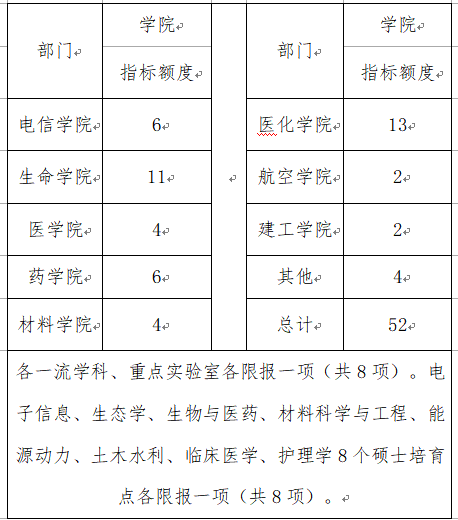 对于实际申报名额不足或过多的学院或部门请及时与科技处联系,便于科技处进行全校调济。
