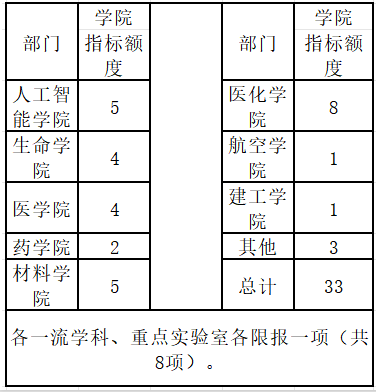 (六)实行限额推荐。重点项目、探索项目、青基由依托单位在择优遴选的基础上限额推荐。2026年度我校省基金重点项目、探索项目、青基项目申报限额41项(具体分配指标参照省基金办分配方法分配,见下表)。另外学校争取到了8个升大申博指标,各二级学院增加1项。